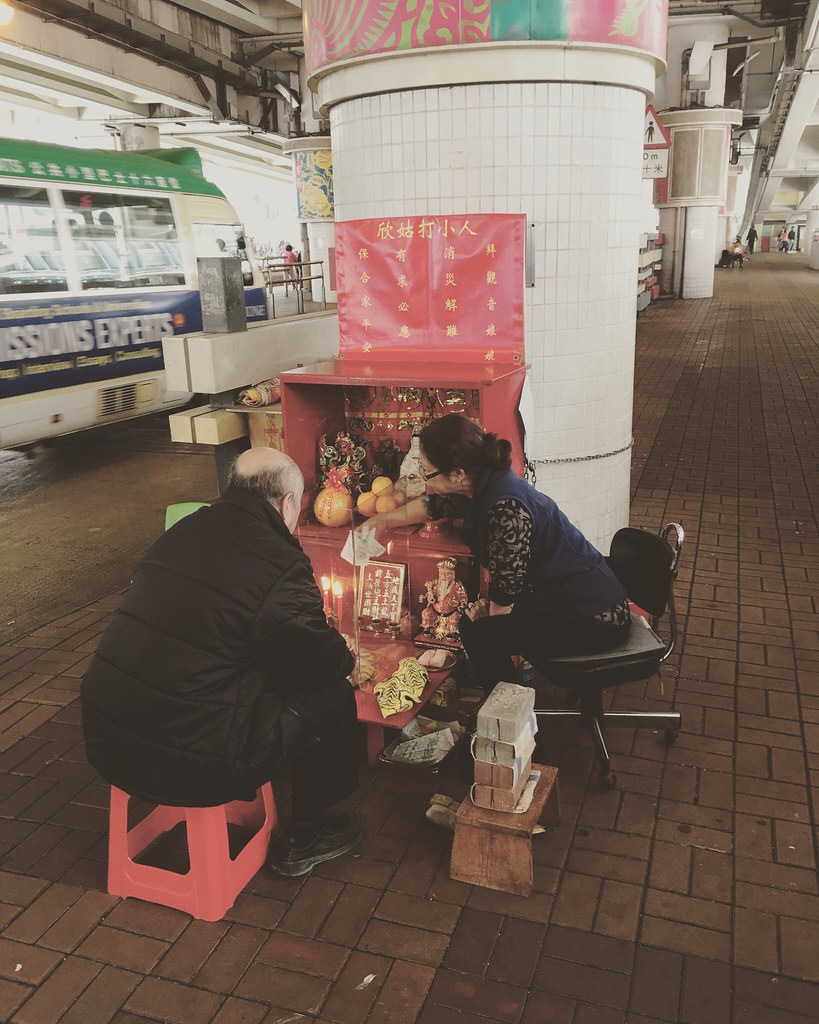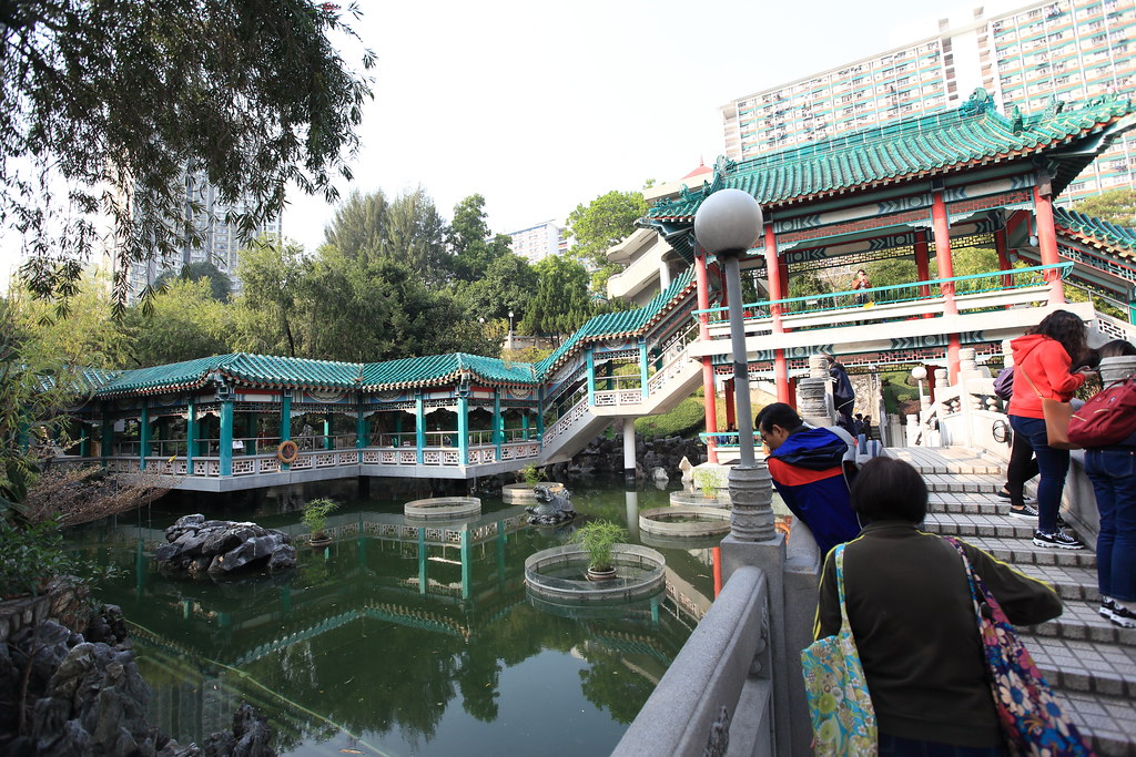 到了黃大仙廟囉,發現他們供品其實都放在地上,是跟台灣有點不大一樣。裡面也有一些花園。