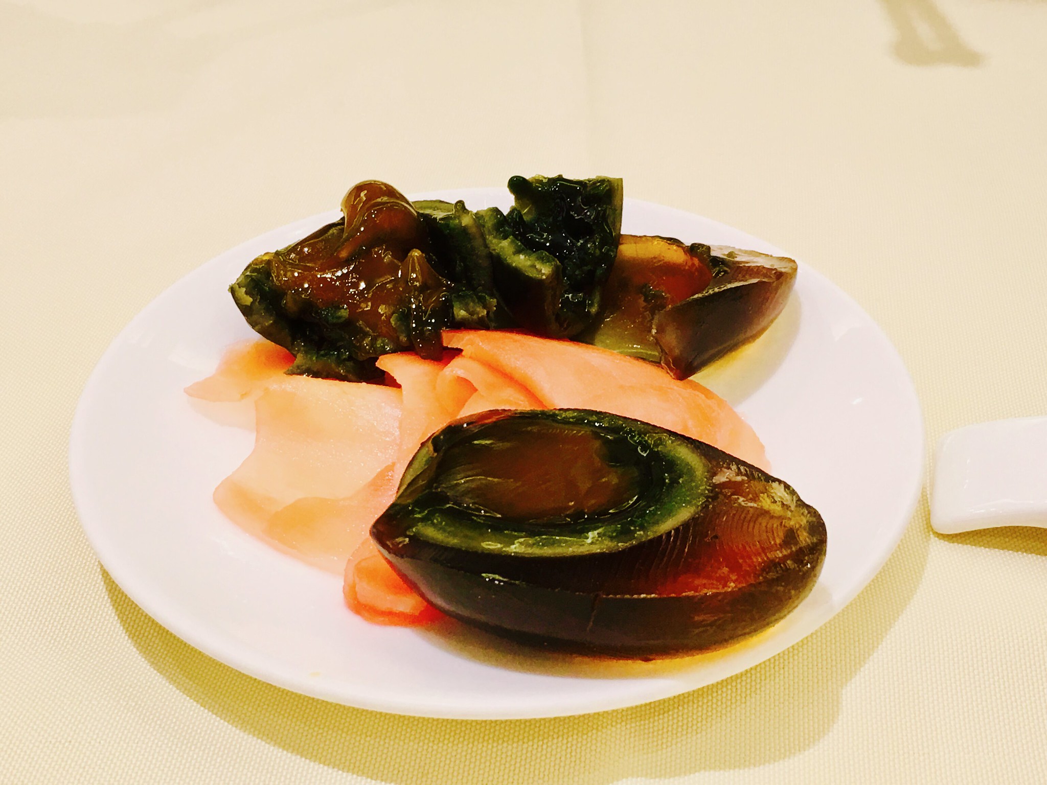 第一道上桌的是「皮蛋酸薑」,嗯…就是皮蛋和薑片的組合。🤔