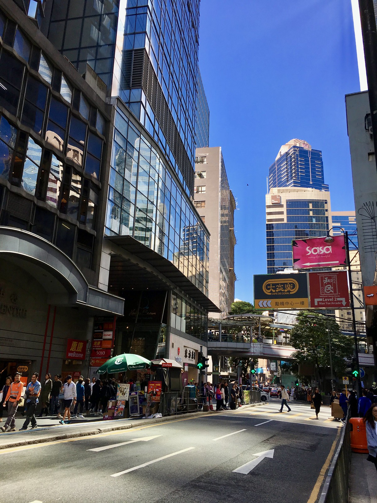 一張寬景圖,讓大家感受一下香港街道的「小巧玲瓏」。過馬路時真的要千萬小心,不然很容易就會被人潮淹沒! 😅