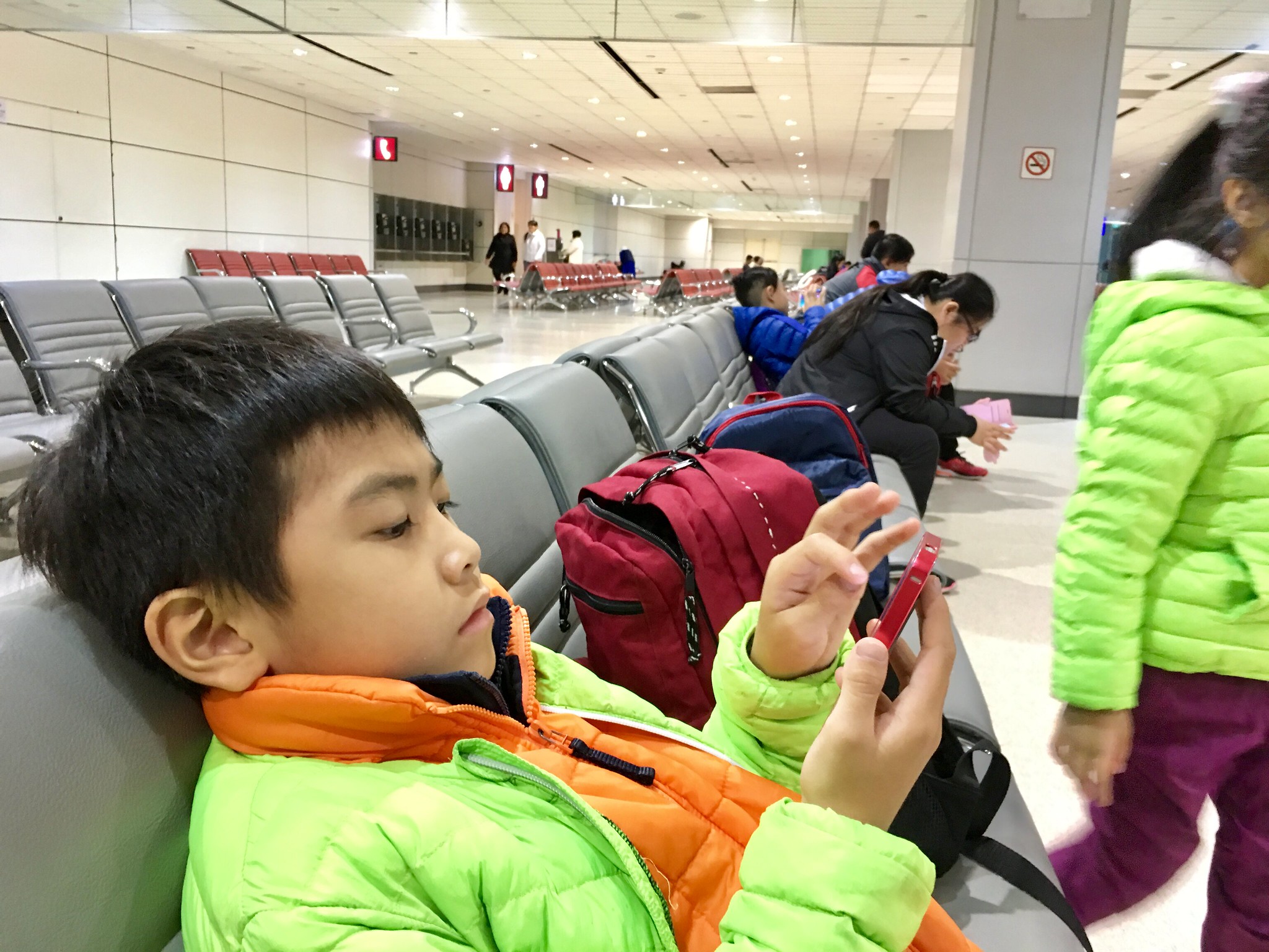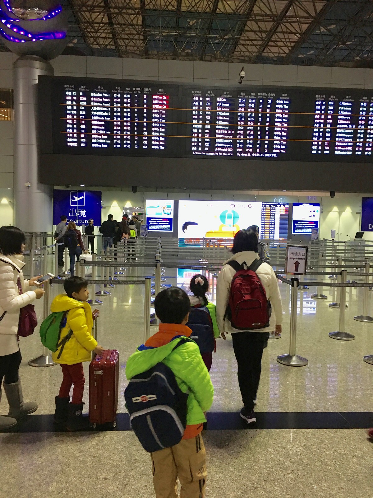 一踏進機場,就看到長榮航空的櫃檯親切地迎接我們。辦理完登機手續、檢查完港簽,我們一家四口就興奮地朝著出境大廳邁進啦!🚶♀️🚶♂️👶👶